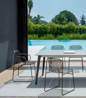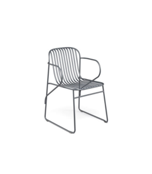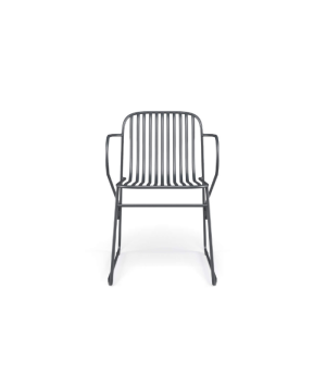 Diseñada por Lucidi/Pevere, Riviera es una colección compuesta por una silla, un sillón pequeño, una tumbona y un taburete; su principal característica es un elegante diseño gráfico minimalista. La estructura, totalmente soldada, está hecha de tubo de acero Fe360 y barras redondeadas (media almendra). Acabado EMU-Coat (cataforesis + pintura).