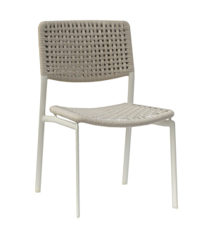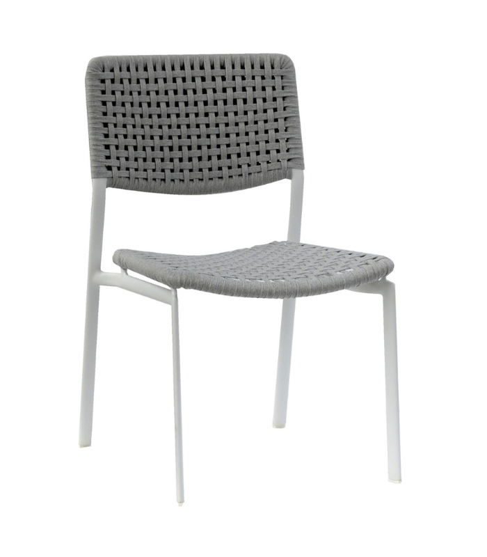 La silla Kakao ofrece la misma sofisticación artesanal que su homóloga la butaca, pero con un perfil más delgado y ligero. Su estructura de aluminio con recubrimiento de polvo está envuelta en un elegante tejido de cuerda sintética, que aporta transparencia visual y frescura. Diseñado con un perfil aerodinámico, es la opción ideal para maximizar la capacidad de asientos alrededor de mesas como la Essential o la Fermo, permitiendo cenar cómodamente sin ocupar espacio extra. Su apilabilidad la hace indispensable para espacios versátiles en la Costa Brava, donde el almacenamiento y la funcionalidad son clave.