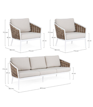 - 1x Sofá de 3 plazas: Largo 207,5 cm | Profundidad 83,5 cm | Altura 77,5 cm