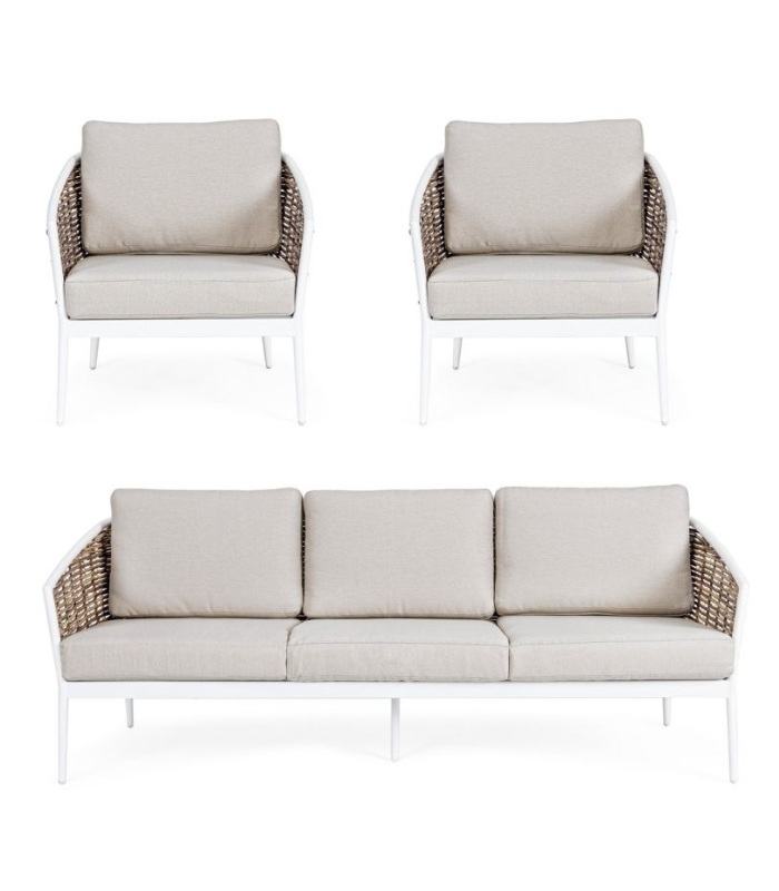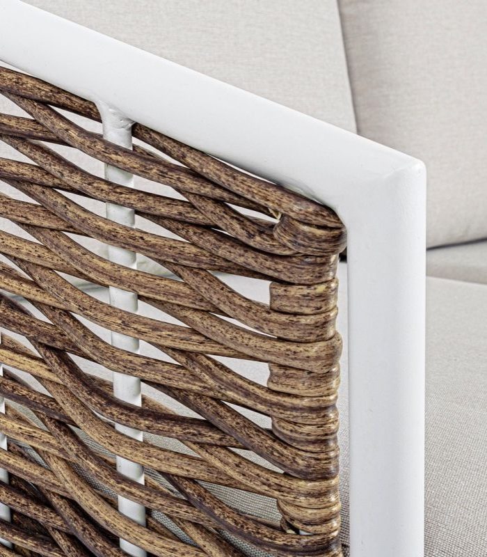 Lleva la elegancia de los resorts exclusivos a tu terraza con el Conjunto de Tumbona MARTINIQUE. Este conjunto de 3 piezas destaca por su diseño envolvente y voluminoso, logrado gracias a un espectacular tejido artesanal de fibra sintética redonda de 9 mm sobre una sólida estructura de aluminio. El conjunto incluye un sofá de 3 plazas (207 cm) y dos sillones individuales, que ofrecen un confort superior gracias a sus cojines desenfundables en tejido Olefin (100% polipropileno), hidrófugo y resistente a la decoloración. Disponible en dos acabados para definir tu estilo Blanco (para un aspecto caribeño luminoso) o Antracita (para una estética moderna y sofisticada).