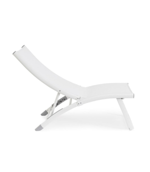 Disfruta de la máxima relajación con una estética impecable gracias a la Tumbona Lounge SORRENTO. Esta pieza se distingue por su diseño «Slim» y minimalista, con una anchura optimizada de 53 cm que permite alinear varias unidades, aprovechando al máximo el espacio de tu solárium. Su estructura fija de aluminio con recubrimiento de polvo de poliéster en blanco puro añade un brillo radiante y garantiza una durabilidad extrema contra el óxido. El confort está asegurado por el Textilene 2×1 de alto gramaje (610 g/m²), que ofrece una superficie firme, fresca y de secado ultrarrápido. El respaldo se reclina en 4 posiciones, lo que te permite ajustar el ángulo perfecto para broncearte o leer.