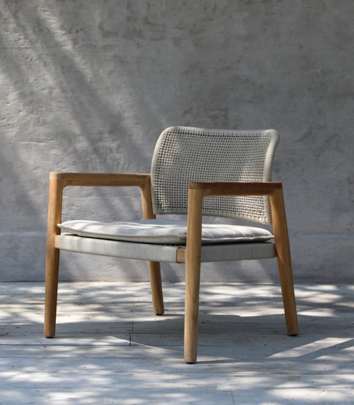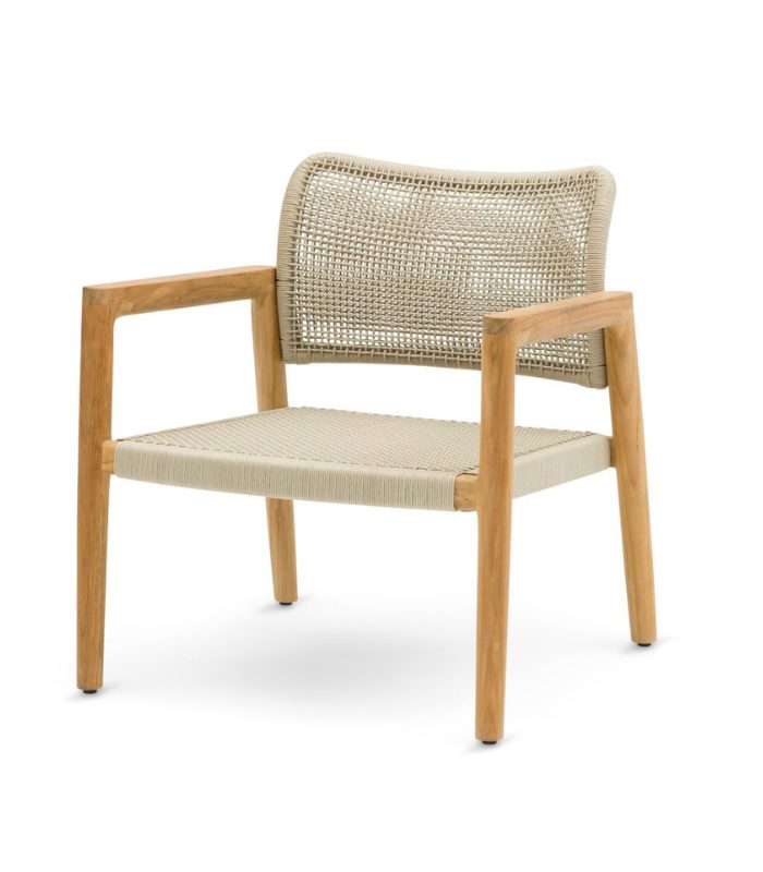 Créez un sanctuaire de calme avec le fauteuil relax Aruna, une pièce qui exalte la beauté des matériaux nobles. D’une architecture plus basse et plus profonde que son homologue de salle à manger, ce fauteuil invite à une détente prolongée. La solidité du bois de teck est adoucie par le tissage complexe de la corde d’oléfine beige, offrant un soutien ergonomique et rafraîchissant. Idéal pour aménager des espaces de détente sous un porche ou au bord de la piscine, ce mobilier résiste non seulement au climat méditerranéen mais vieillit avec élégance, devenant ainsi le point fort de votre jardin.