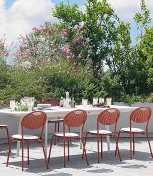 La chaise et le tabouret de bar en acier Coupole sont une réinterprétation contemporaine du best-seller historique homonyme, développé par EMU D&S Lab. Le motif distinctif de son dossier s’inspire des formes du dôme de Brunelleschi.