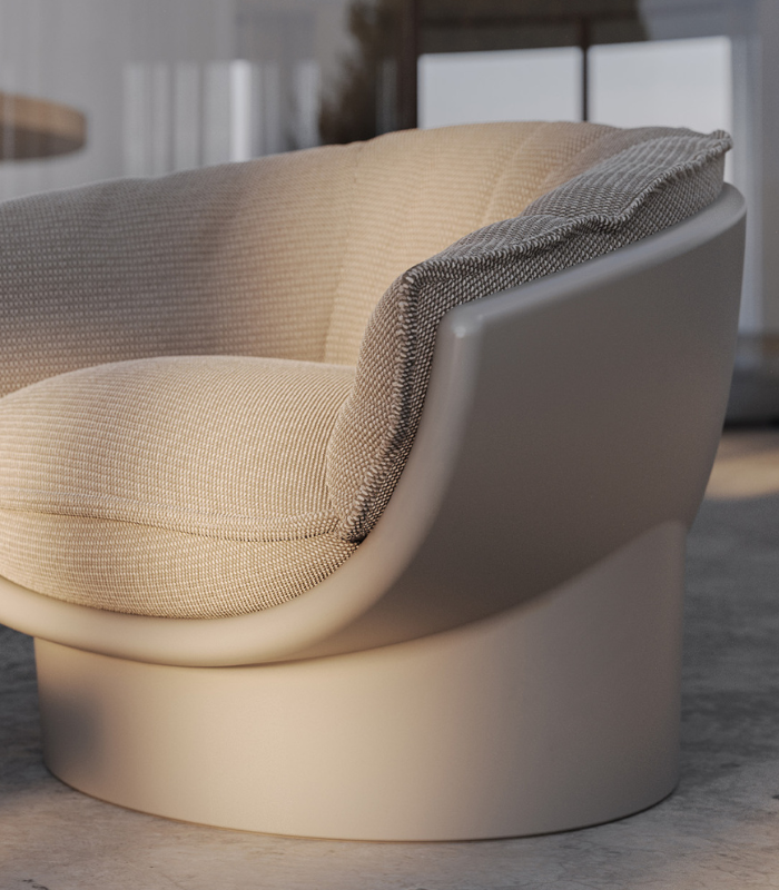 Le fauteuil LUNA, conçu par l’architecte Ramón Esteve, est la synthèse parfaite de l’ergonomie et du design d’avant-garde. Sa structure en polyéthylène 100 % recyclable, obtenue par rotomoulage, offre une résistance supérieure aux climats maritimes. Grâce à son rembourrage en mousse de polyuréthane haute densité, ce fauteuil offre un confort enveloppant, idéal pour créer des coins de détente exclusifs dans les espaces extérieurs contemporains.