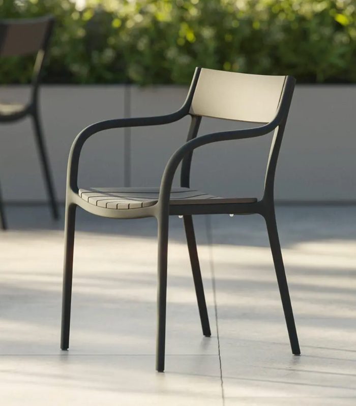 Le design épuré de son dossier renforce la sensation d’harmonie, facilite la ventilation et donne une image raffinée. Ses dimensions équilibrées, associées à une ergonomie conçue pour un usage intensif, en font un choix polyvalent et durable pour les clients à la recherche d’un mobilier haut de gamme au design méditerranéen contemporain.