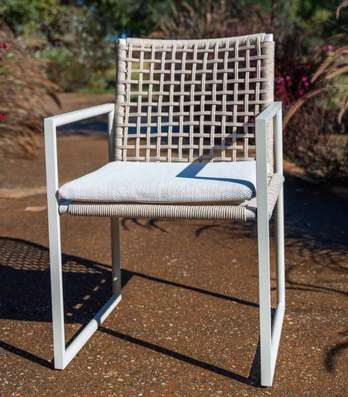 MISTRAL – Fauteuil de salle à manger en aluminium et corde beige