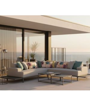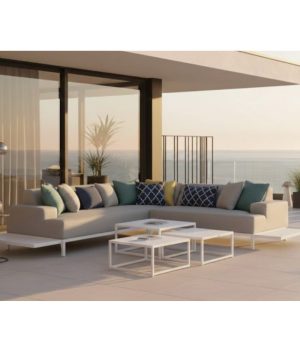Élevez votre espace de vie extérieur avec l’ensemble de canapés OPALE. Cet ensemble exclusif comprend un canapé 3 places et un canapé 2 places, caractérisés par une structure robuste en aluminium et un design contemporain qui reflète le style de vie méditerranéen le plus élégant.. Ses proportions généreuses et ses coussins de qualité supérieure offrent un confort exceptionnel, ce qui en fait la pièce maîtresse parfaite pour les villas de luxe et les projets d’extérieur haut de gamme..