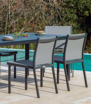 Maximisez la capacité et le style de votre salle à manger extérieure avec la chaise empilable sans accoudoirs de la collection PANAMA. Cette pièce essentielle du design minimaliste se passe d’accoudoirs pour offrir une silhouette plus fine et plus légère, permettant d’accueillir un plus grand nombre de convives autour de la table dans un confort total. Dotée d’une structure en aluminium peint par poudrage et d’un dossier en tissu respirant, elle est le choix idéal pour une utilisation intensive et dynamique. Son caractère empilable facilite le rangement, ce qui en fait une solution pratique et élégante pour les villas et les terrasses de la Costa Brava.