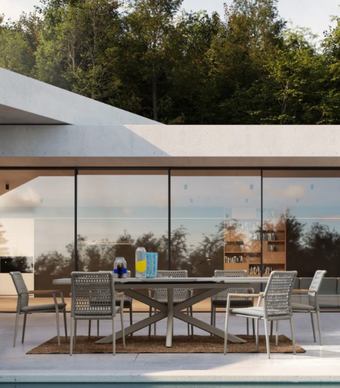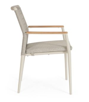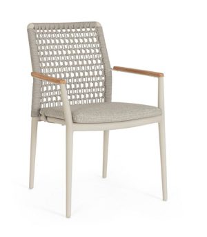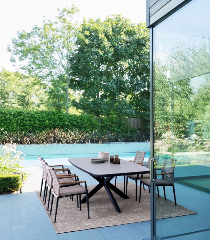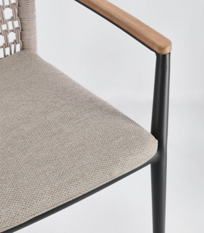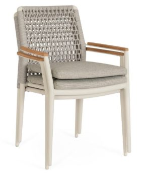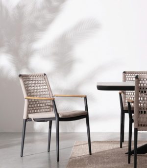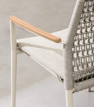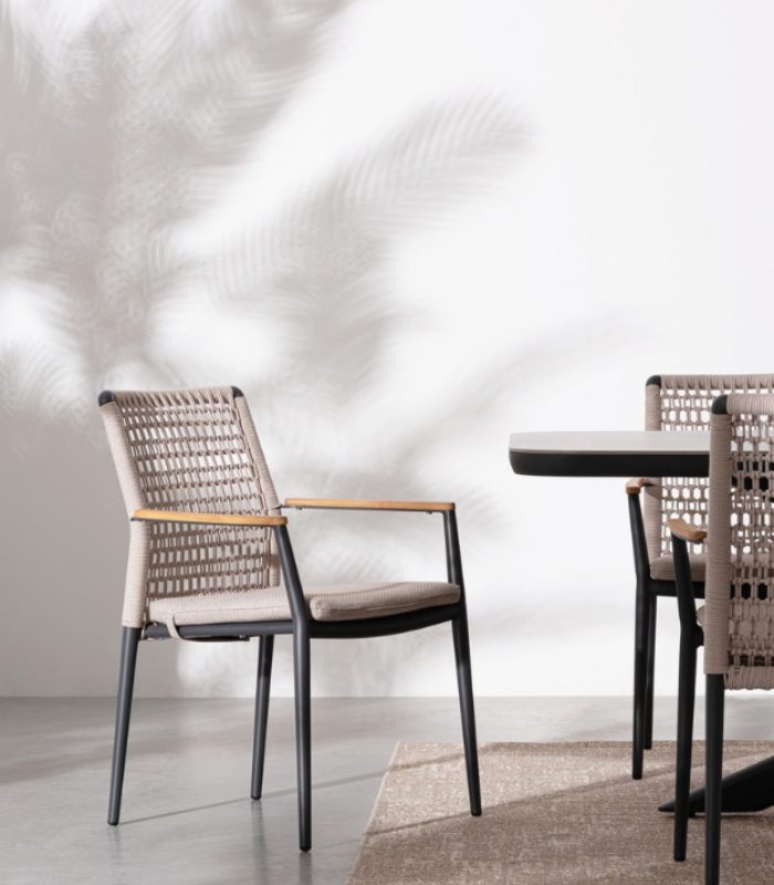 Ajoutez de la texture et de la distinction à votre salle à manger extérieure avec la chaise PORTOFINO. Cette pièce de design hybride se distingue par la combinaison de matériaux nobles et d’une ingénierie moderne : une structure légère en aluminium revêtu de poudre, un dossier en corde d’oléfine tissée de manière artisanale et d’élégants inserts en bois de teck sur les accoudoirs qui procurent de la chaleur au toucher. Conçu pour s’adapter à votre style, il est disponible en deux finitions : Pélican (ton sable) pour un look méditerranéen doux, ou Anthracite (gris foncé) pour un contraste moderne et sophistiqué avec le bois. Il est entièrement empilable, ce qui facilite le rangement, et offre un confort supérieur grâce à son coussin amovible en tissu Olefin (déperlant et résistant au soleil).