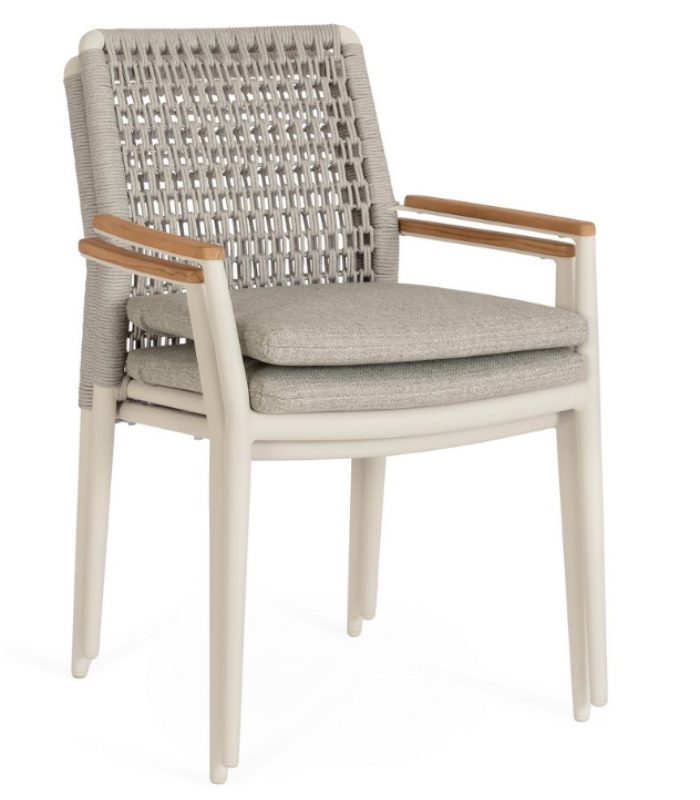 mixed design (Alu+Wood+Rope), Stackable, waterproof cushion included