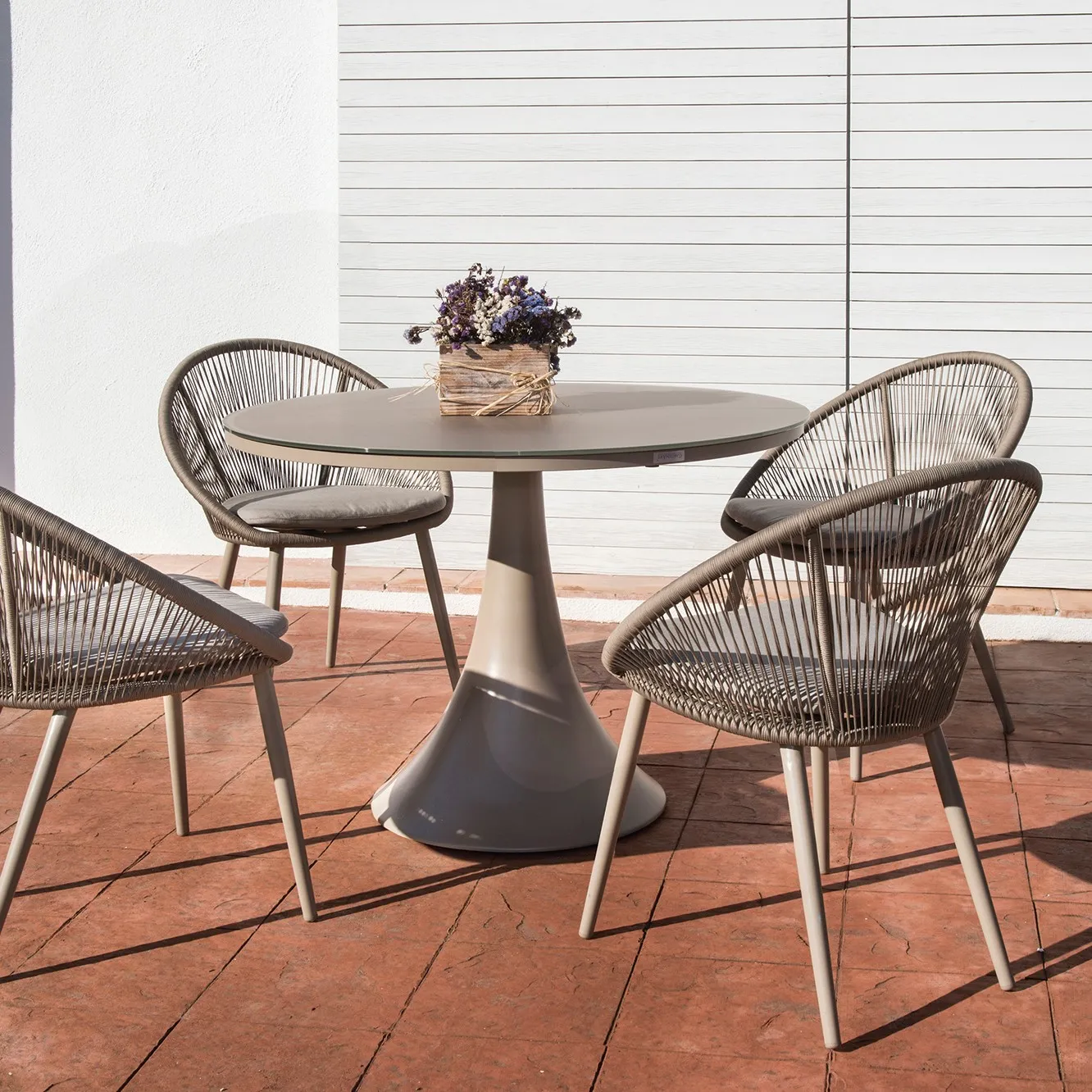 Rehaussez la sophistication de votre terrasse avec cette chaise de salle à manger exclusive, qui allie l’aluminium léger fini champagne au tissage artisanal de cordes à haute résistance. Son design ergonomique et son coussin en tissu Agora offrent un confort exceptionnel, parfait pour les environnements méditerranéens exigeants à la recherche de durabilité et de style contemporain.