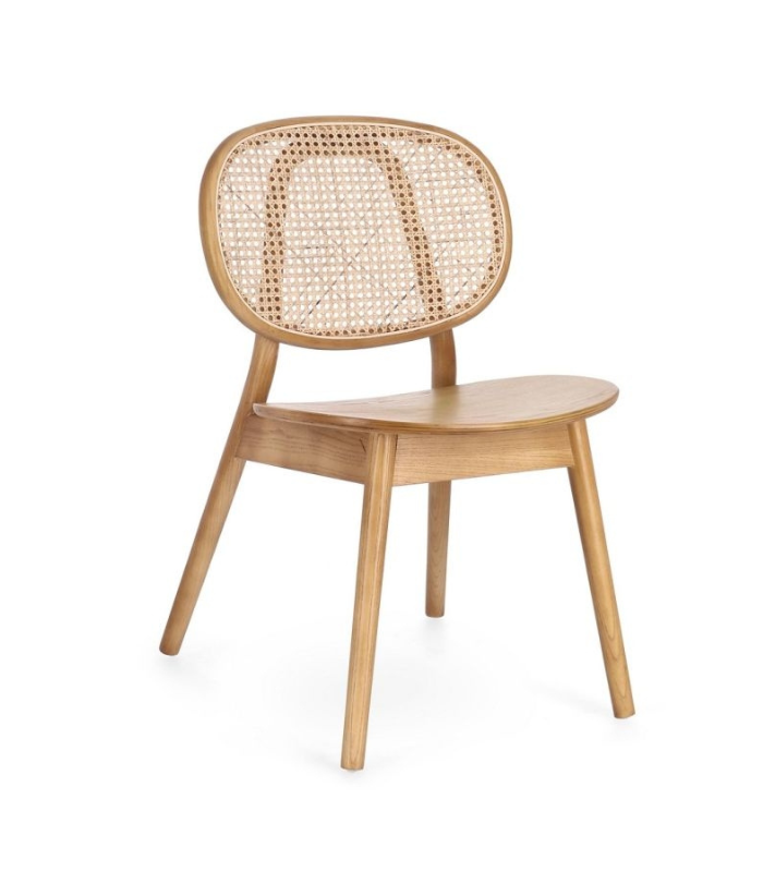 The Adolis chair is an organic design piece that captures the essence of handcrafted luxury. Its robust elm wood structure is harmoniously complemented by a woven rattan backrest, providing a natural texture and unmatched visual lightness. Finished with high-quality polyurethane to protect its original beauty, this chair is perfect for creating warm and sophisticated atmospheres in exclusive villa dining rooms or high-end interior design projects.