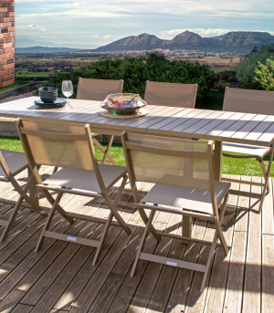 Versatility is the key to the Auto dining table, designed to adapt dynamically to your hospitality needs. Thanks to its fluid and simple extension mechanism, this table expands from 156 cm (ideal for daily family use) to 226 cm to accommodate more guests during special celebrations. Made entirely of aluminum, it is available in Carbon, Champagne, and White finishes, allowing for perfect coordination with various chair collections. Its total weather resistance and low maintenance make it a bestseller for practical homes that do not compromise on elegance.