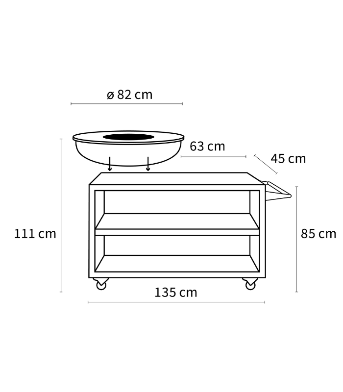 Redefine the concept of outdoor cooking with the BonBiza Island by BonFeu. This complete station, crafted from high-quality Corten steel, integrates an 80 cm griddle-style cooking surface with extensive preparation space and wood storage. Its robust wheels allow for total mobility, making it the focal point for large group gatherings where rustic-industrial design and premium functionality meet.