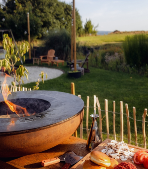High-durability Corten Steel and 6 mm thick cooking plate (plancha). |