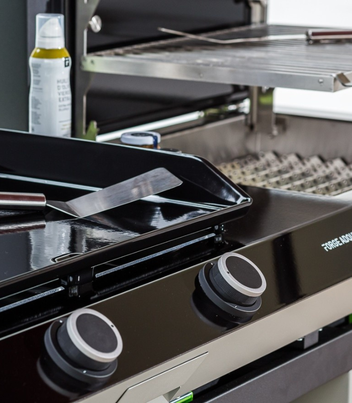 Experience the ultimate culinary duality with the Forge Adour COMBI. This unique piece merges the precision of the gas griddle with the ancestral flavor of the wood-fired grill in a single unit. Crafted with a high-resistance three-layer coating, its structure guarantees unalterable durability against corrosion and UV rays. With a capacity for up to 20 guests and two integrated hoods, it is the perfect centerpiece for your most exclusive social events.