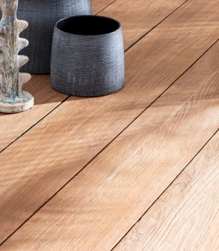 Natural teak with a rustic finish. |