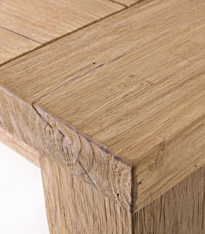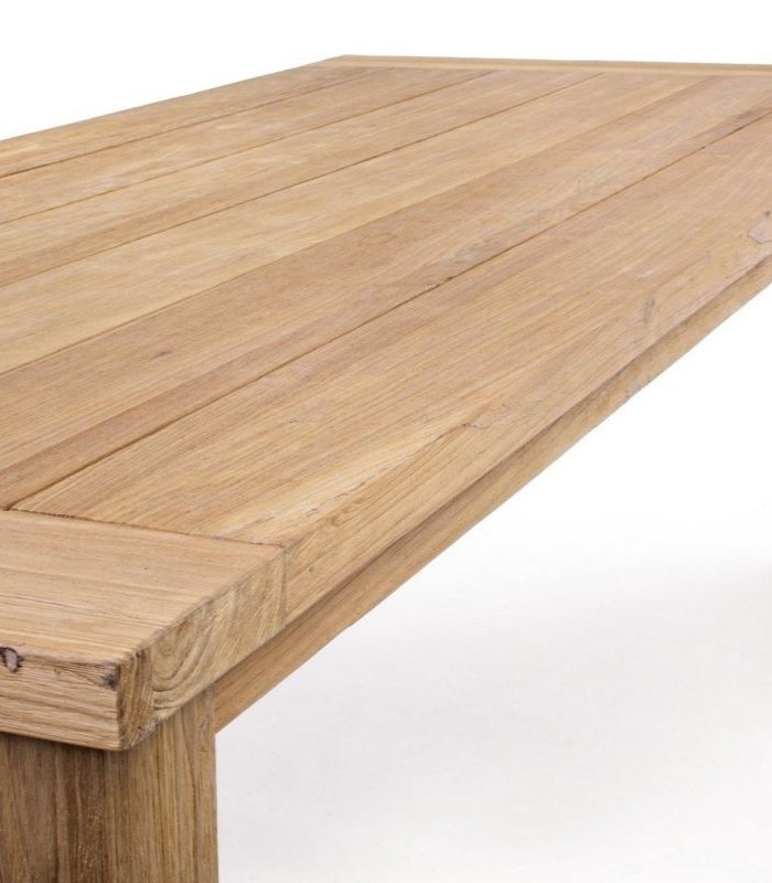 The ELBE dining table is a statement of rustic elegance and sustainability. Crafted from SVLK-certified reclaimed teak, each piece is a unique work of art featuring natural marks and grains inherent to its artisanal origin. Its robust 4.5 cm thick top and solid 11×11 cm legs ensure a commanding presence and exceptional durability in demanding outdoor environments. Ideal for villas seeking authentic Mediterranean design with materials that gain character over time.