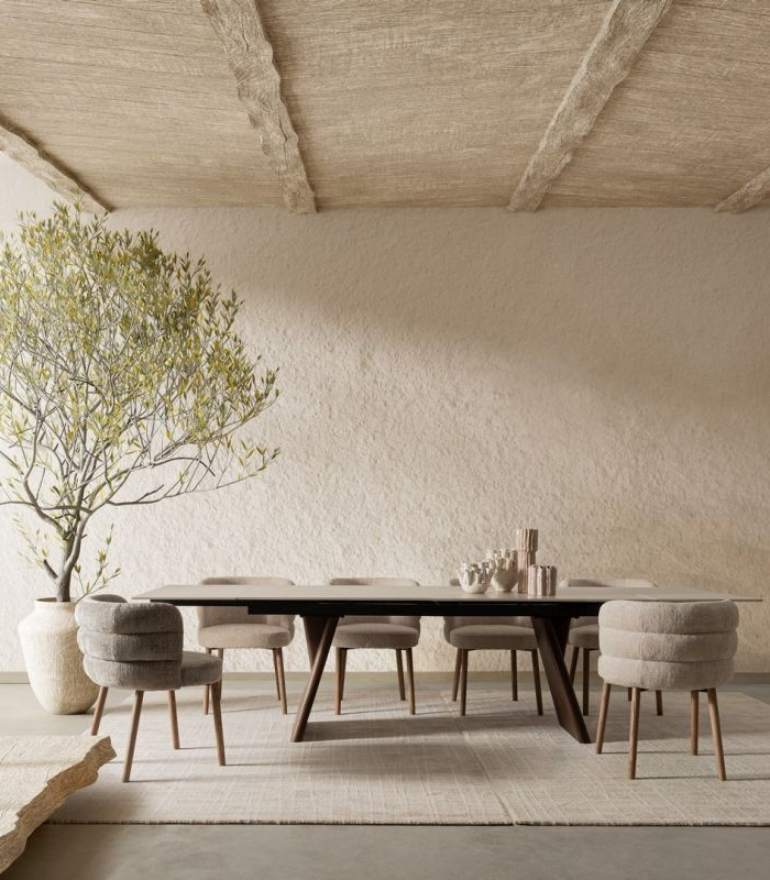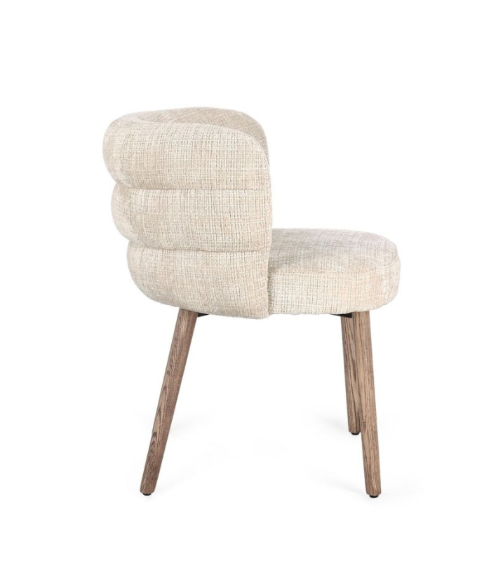 The ILMA armchair represents the perfect balance between industrial modernity and organic warmth. Its powder-coated steel structure masterfully combines with solid oak wood legs, offering a contemporary and timeless aesthetic. The seat, made of plywood and padded with high-density polyurethane foam, is upholstered in premium polyester, guaranteeing exceptional comfort for exclusive dining rooms or lounge areas.