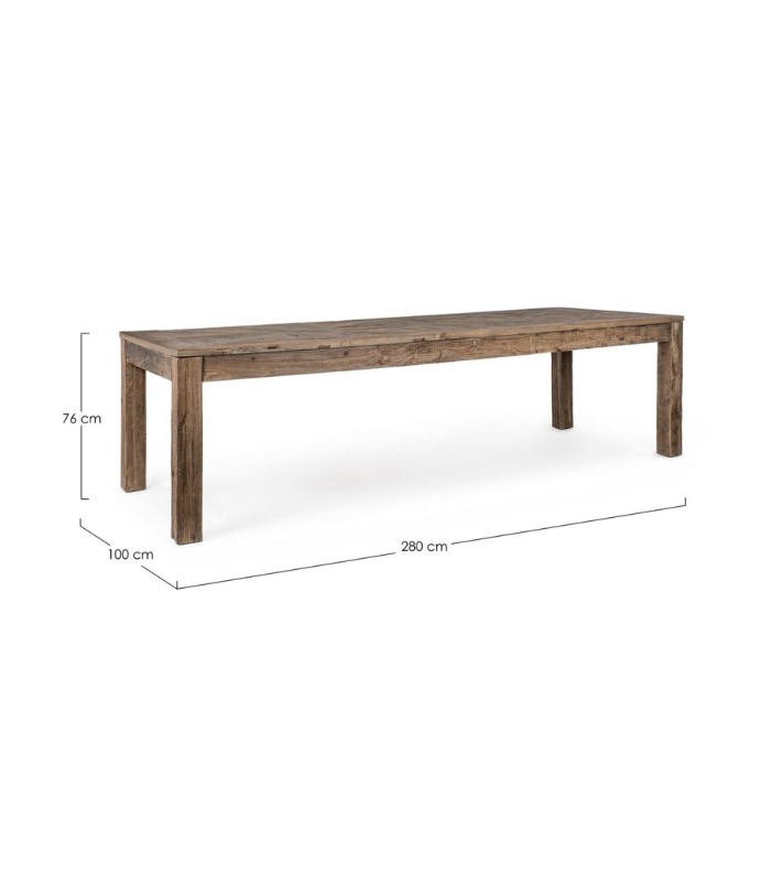 The KAILY table is a masterpiece of sustainable luxury and design. Crafted entirely from recycled elm wood, the top features an exquisite aged parquet effect that highlights the material’s natural patina and heritage. At 280 cm in length, it serves as the perfect centerpiece for grand gatherings. The nitrocellulose lacquer finish protects the wood while preserving its organic texture, making it ideal for contemporary Mediterranean-inspired interiors.