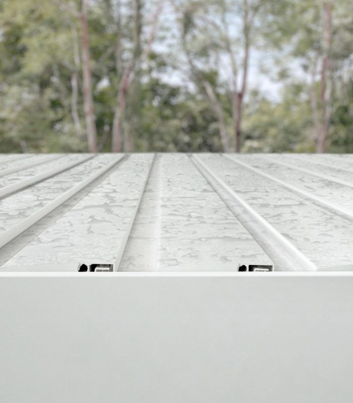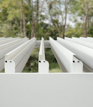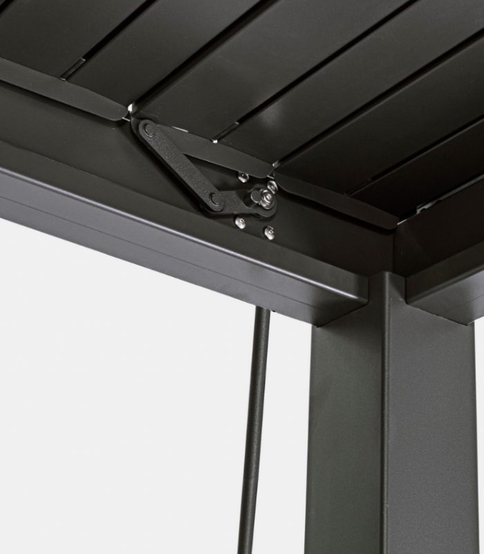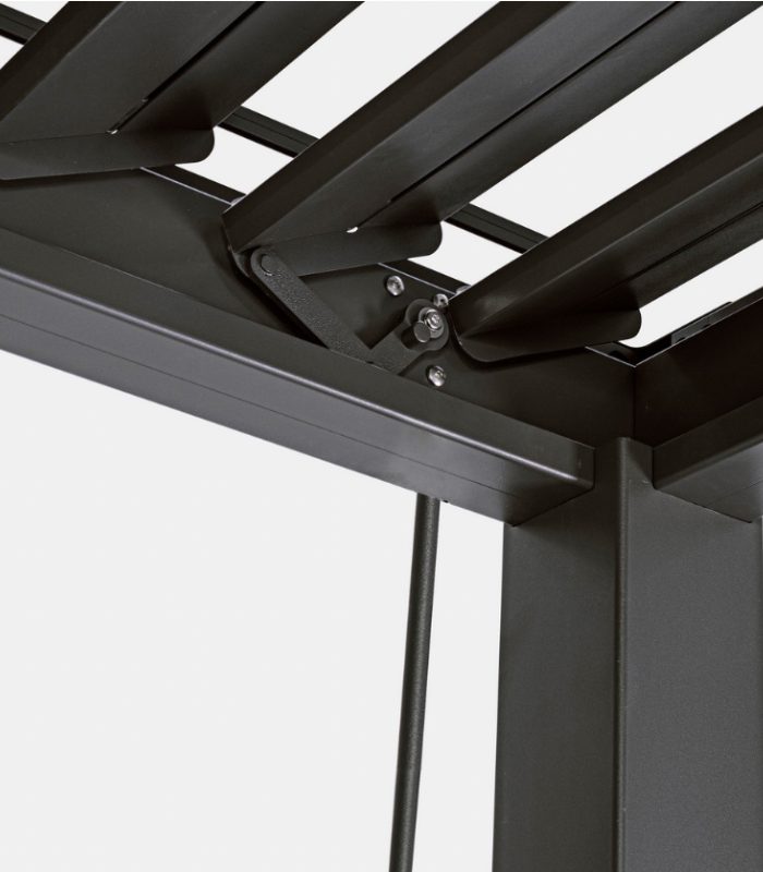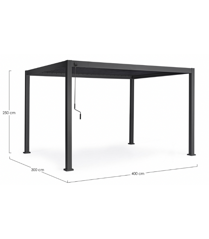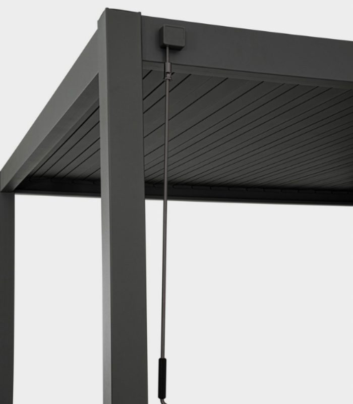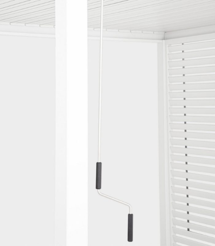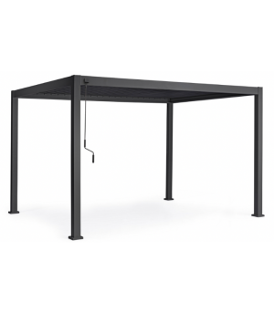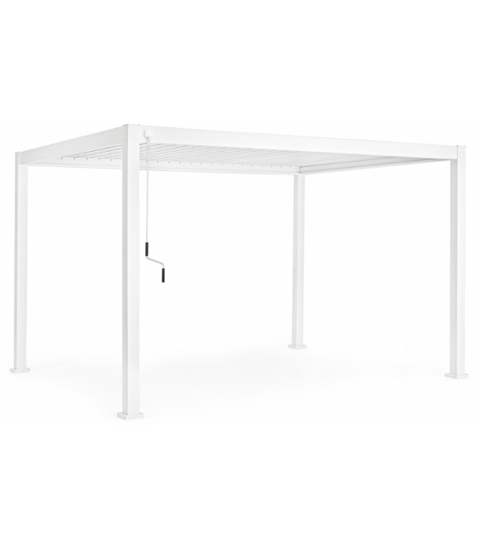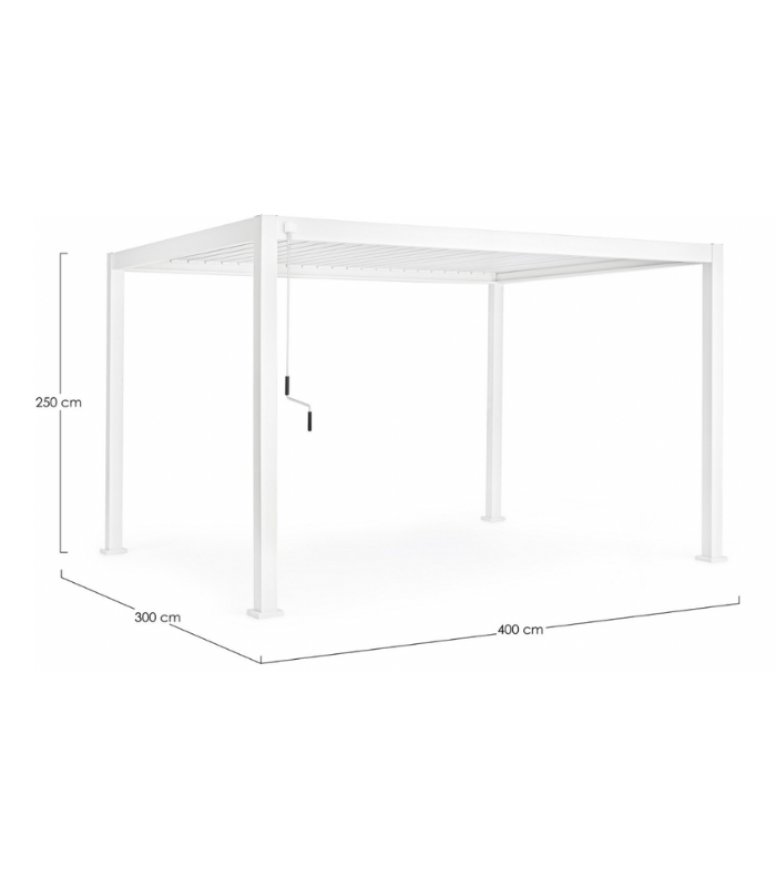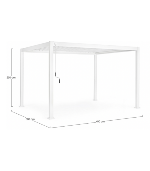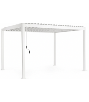 Redefine your outdoor living experience with the KEYS Bioclimatic Pergola. With a generous 12 m² area ($300 \times 400$ cm), this architectural structure allows you to enjoy your terrace 365 days a year. Crafted entirely from high-resistance polyester powder-coated aluminum, it features a roof of double-layer adjustable louvers (173×30 mm) operated manually by a crank to regulate sunlight and breeze. Its smart design includes an integrated water flow system within the main posts ($111 \times 111$ mm), ensuring invisible and efficient drainage during rain. Available in White and Anthracite.