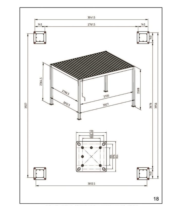 Powder-coated aluminum with 111×111 mm posts and 140×75 mm beams |