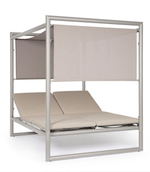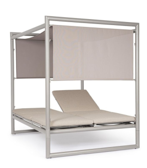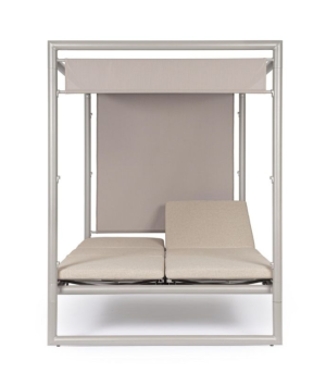 Transform your pool area into a private resort with the exclusive double Daybed from the KEYS ISLAND collection. This architectural piece of outdoor furniture combines a robust polyester powder-coated aluminum structure in a Rastin finish (sophisticated rust/brown tone) with maximum ergonomic comfort. Its two independent beds feature backrests that recline in 4 positions (in both directions), allowing each user to adjust their posture at will. The design stands out for its sliding textilene sunshade roof, adjustable in 3 positions to control sun exposure at all times. Includes high-comfort mattresses with removable covers made of Olefin fabric (100% polypropylene), a high-end technical material that is water-repellent and resistant to UV fading.