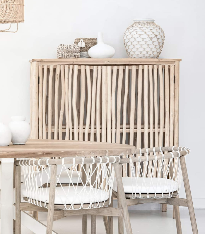 Add a touch of natural elegance to your spaces with the KO SAMUI chair. Crafted from Sungkai wood, this chair combines durability with timeless style. Its white cushion, both comfortable and refined, perfectly complements its sleek design. Suitable for both indoor and outdoor use, it is weather-resistant and blends seamlessly with any decor. Perfect for dining or relaxing moments.