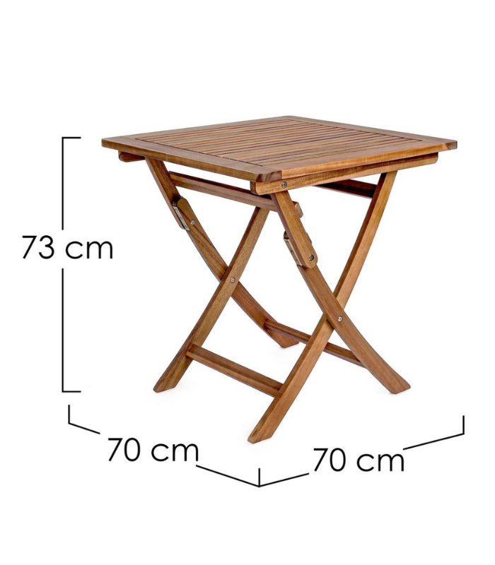 70 cm (Length) x 70 cm (Width); Standard dining height. |