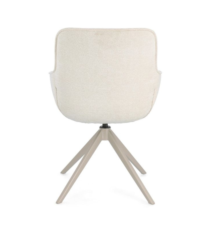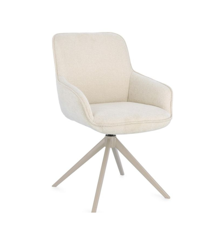 The Matilda chair represents the perfect fusion of technical functionality and refined aesthetics. Designed to offer an enveloping comfort experience, it features a plywood seat and high-density polyurethane foam padding. Its soft-touch polyester upholstery complements a versatile 360° swivel structure with an automatic return mechanism. The steel legs with epoxy powder finish ensure durability and a contemporary style, making it the ideal piece for luxury dining rooms or sophisticated workspaces.