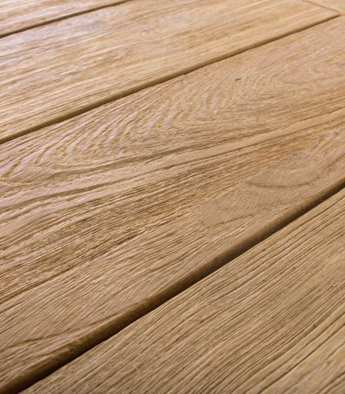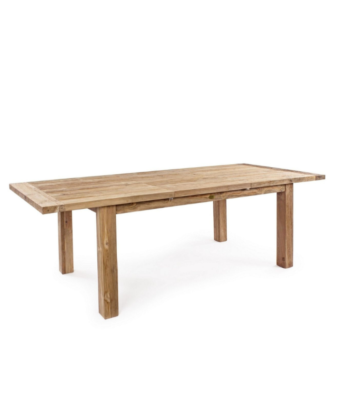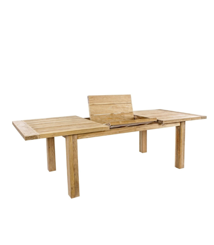 Solid reclaimed teak wood (SVLK). High-quality stainless steel hardware and aluminum extension system. |