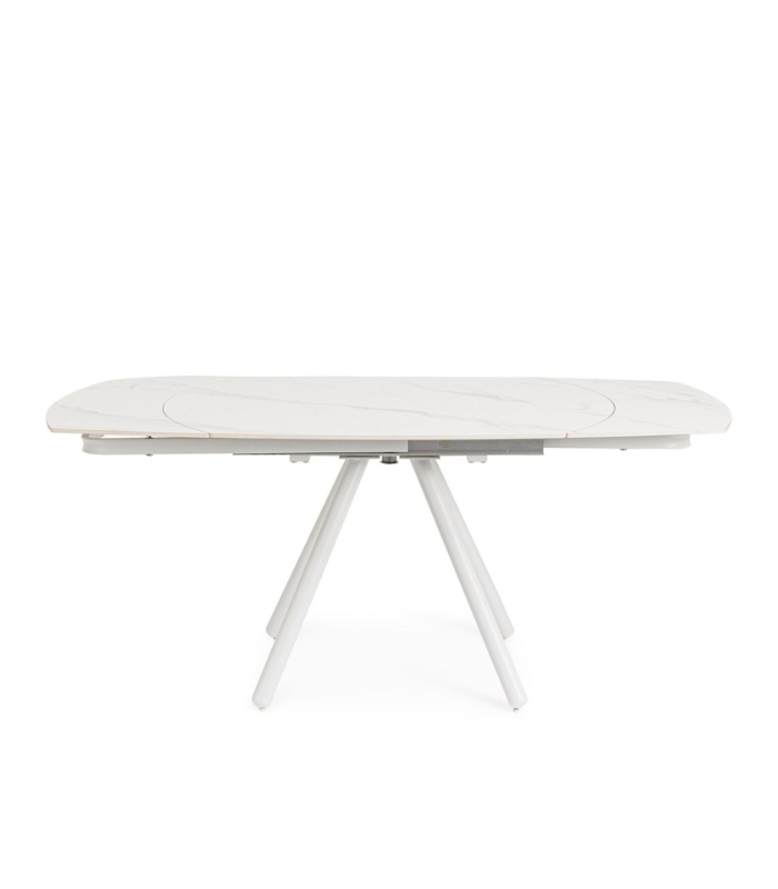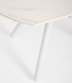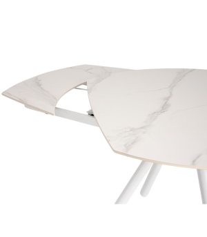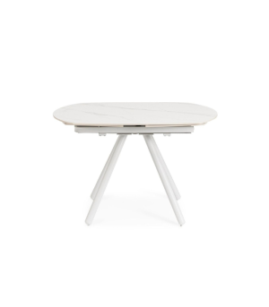 The RAITA extendable table is the ideal solution for those seeking sophistication in optimized spaces. Its porcelain stoneware top with a white marble effect offers a highly resistant surface and a refined aesthetic. Thanks to its extension mechanism, it easily expands from 119 cm to 178 cm. The epoxy-finished steel structure ensures exceptional durability while maintaining a light and modern design.