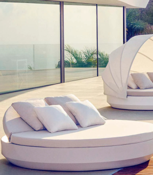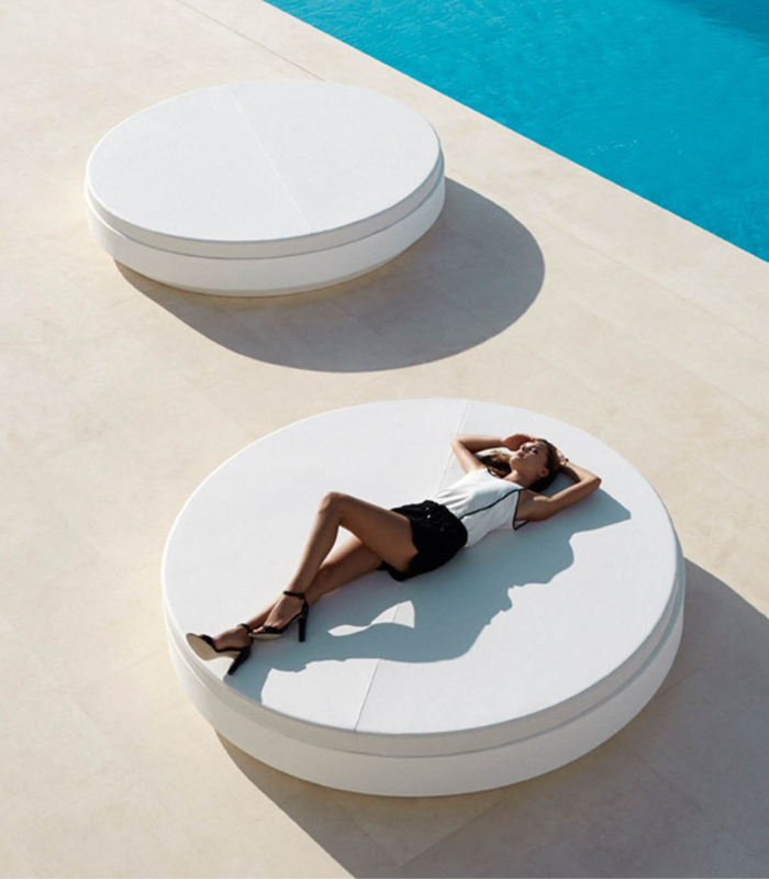 The Vela circular Daybed is the ultimate expression of sophisticated relaxation. Designed by Ramón Esteve, its pure and enveloping shape creates an oasis of comfort in any pool area or luxury terrace. This piece features an integrated reclining backrest for total adaptability and a large-format circular structure, ideal for enjoying the Mediterranean lifestyle with maximum exclusivity. Manufactured by rotational molding, it is as sculptural as it is durable.