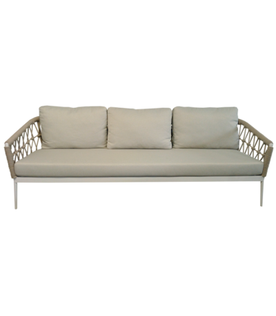 Turn your terrace or garden into a welcoming retreat with the GYPSY 3-seater sofa, crafted by Studio La Villa. Combining a sturdy aluminum frame with a woven rope finish, this sofa stands out for its contemporary style and comfort. Easily complete your outdoor seating area with other elements from the collection for unique moments of outdoor enjoyment.