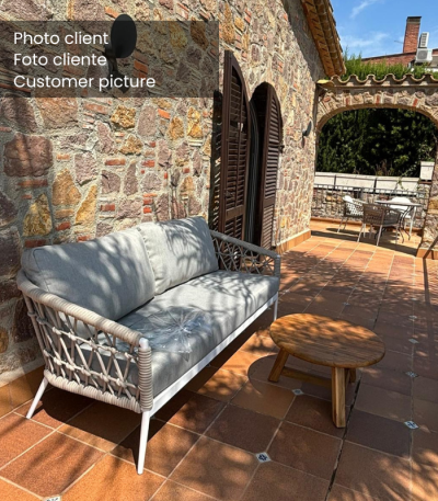 The GYPSY 2-seater sofa combines elegance and durability with its aluminum structure and textilene rope finish. Designed for outdoor use, it is both weather-resistant and easy to maintain. Available in two modern colors, this sofa can be paired with an armchair or a 3-seater sofa from the same collection to create a harmonious and inviting outdoor lounge. A Studio La Villa creation, perfect for enhancing your outdoor spaces.